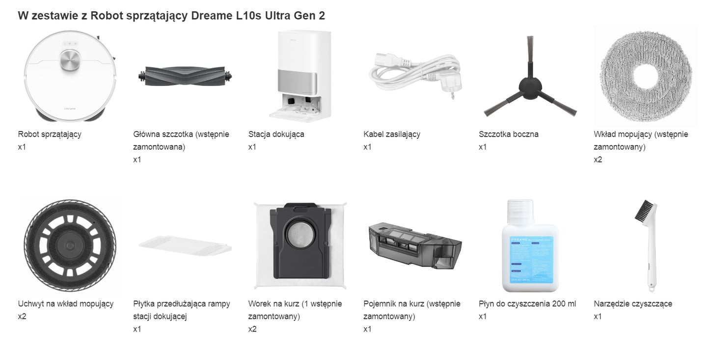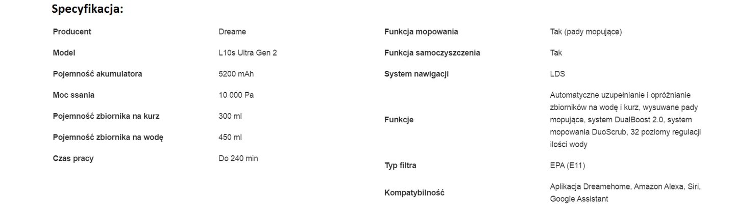 - Sterowanie głosowe – Alexa, Google Home, Siri: „Dreame, wyczyść kuchnię!”.