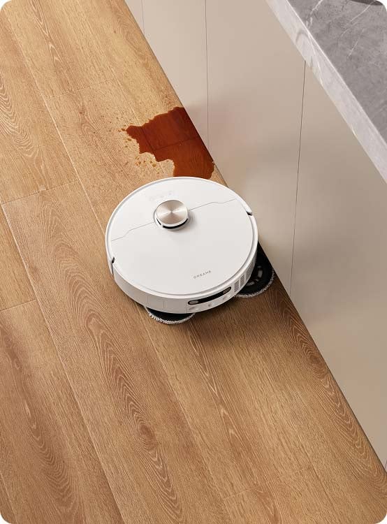 Dreame X40 Ultra Complete wyposażono w technologię MopExtend™ RoboSwing, która automatycznie wysuwa pady mopujące nawet o 4 cm w stronę krawędzi, listew przypodłogowych i nóg mebli.