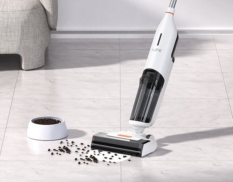 ILIFE W90 to rewolucyjny system 3w1, który łączy odkurzanie, mopowanie i mycie w jednym urządzeniu – skutecznie usuwa zarówno suche zabrudzenia jak kurz czy sierść, jak i mokre plamy po kawie, mleku czy błocie. Nie musisz najpierw odkurzać, a potem myć: wszystko dzieje się jednocześnie, oszczędzając do 50% czasu. Idealny na twarde powierzchnie jak panele, płytki, parkiet, laminat, marmur czy kamień – to czystość premium bez przełączania narzędzi, dla szybkich porządków po dzieciach czy pupilach!
