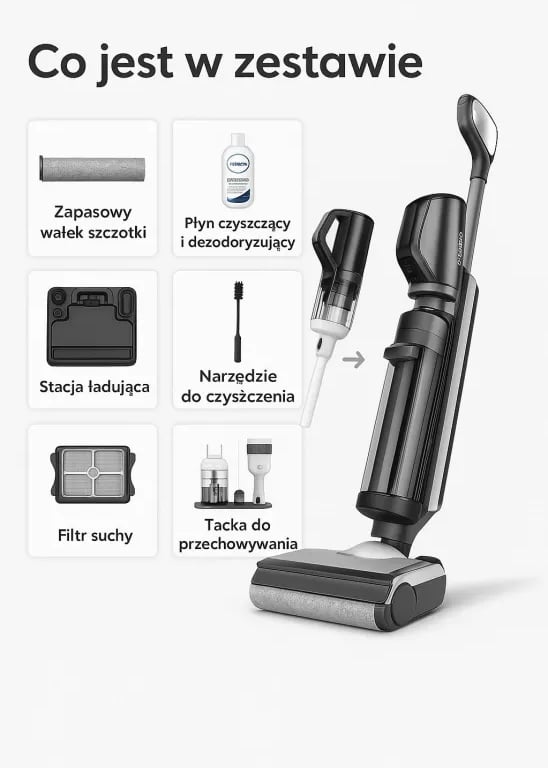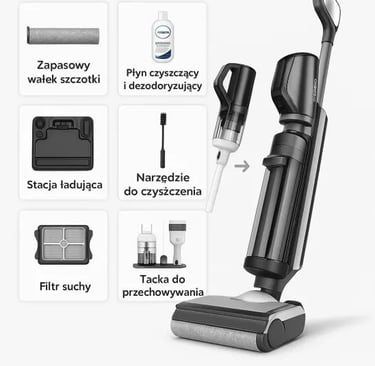 Tineco Floor One S5 Combo przychodzi z pełnym wyposażeniem: mop-odkurzacz z modułem ręcznym, stacja ładująca, 2 rolki szczotkowe, filtr, roztwór czyszczący, narzędzie do konserwacji i instrukcja po polsku. Wszystko zapakowane w solidne pudełko z szybką wysyłką EU. Z 2-letnią gwarancją, 30-dniowym zwrotem i wsparciem 24/7, to zakup bez ryzyka. Miliony zadowolonych użytkowników na Amazon i Tineco potwierdzają: S5 Combo to bestseller, który zmienia rutynę w przyjemność! Zamów teraz i odkryj sprzątanie premium – Twój dom zasługuje na czystość bez wysiłku!