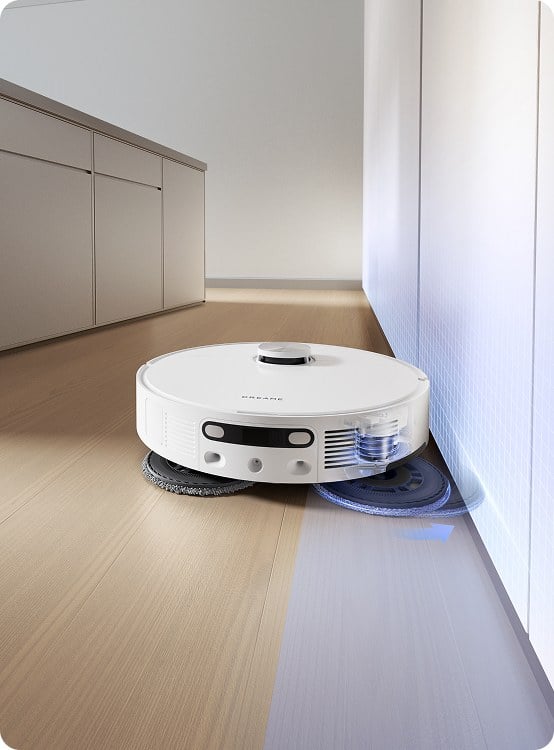 Dzięki technologii MopExtend™ Dreame L10s Ultra Gen 2 z łatwością dociera do trudno dostępnych miejsc, takich jak przestrzenie pod niskimi meblami czy ciasne zakamarki (na głębokość do 4 cm). Specjalnie zaprojektowana funkcja rozpoznawania krawędzi oraz regulacja długości mopa gwarantują, że robot dokładnie wyczyści każde miejsce, omijając przeszkody, takie jak stoły czy listwy przypodłogowe.